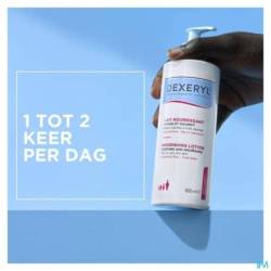 DEXERYL Voedende Lotion is speciaal ontwikkeld voor de vochtarme, gevoelige, droge of zeer droge huid en biedt een vloeibare en lichte textuur. Deze "EMOLLIENT PLUS"-verzorging is onmiddellijk doeltreffend en 95% van de gebruikers merkt al bij het eerste gebruik dat de huid minder trekkerig aanvoelt. Deze lotion hydrateert en voedt je huid diepgaand. Hij biedt 24 uur lang intense voeding en verbetert het vermogen van de opperhuid om water vast te houden en lipiden aan te maken. Verrijkt met glycyrrhetinezuur, kalmeert het de huid onmiddellijk. De lichtgewicht formule wordt snel geabsorbeerd, waardoor het product snel kan worden aangebracht en tegelijkertijd flexibel en comfortabel is, ideaal voor gebruik op het hele lichaam, inclusief gezicht en handen. Deze lotion is geschikt voor dagelijks gebruik het hele jaar door of in geval van een tijdelijke of seizoensgebonden droge huid. Het kan gebruikt worden in combinatie met make-up. De pompfles van 500 ml garandeert eenvoudig en praktisch gebruik voor het hele gezin, inclusief baby's. De lotion voldoet aan de eisen van de gevoelige huid en is getest onder dermatologisch toezicht. De formule is parfumvrij, hypoallergeen en niet-comedogeen en biedt een aangename en doeltreffende verzorging. Gun je huid het beste met DEXERYL Voedende Lotion. Kortom, kies voor intense hydratatie, langdurige voeding en een vloeibare, lichte textuur. Voor een complete verzorgingsroutine voor de droge huid, combineer je het met DEXERYL Douchecrème of DEXERYL Wasolie.