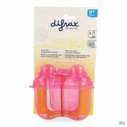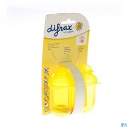 De doseertuitjes sluiten aan op elke Difrax fles, waardoor je het melkpoeder makkelijk overgiet.