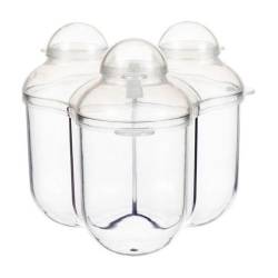 Drievaksdoosje voor melkpoeder. Vul je babyfles makkelijk onderweg. In elk vakje past een voeding van 210 ml (9 schepjes poedermelk).