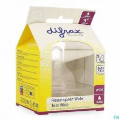 De Difrax Flessenspeen Wide Large past op de brede S-fles 200 en 310 ml. De speciale coating op de speen zorgt voor een extra soft grip. De flessenspeen heeft een zachte ronde tepelvormige speen. Met de Difrax flessenspeen is borst- en flesvoeding goed te combineren.