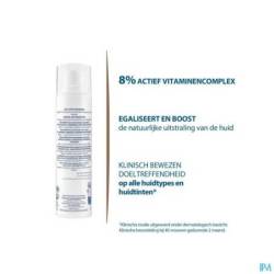 • 1e gevitaminiseerd verzorgingsproduct voor dagelijks gebruik dat de teint egaliseert en de natuurlijke uitstraling van de huid kracht bijzet • Met een concentratie van 8% aan actieve gevitaminiseerde bestanddelen dringt de formule snel in de huid, om zo de teint te verhelderen en te verlichten en de huid te beschermen tegen de schadelijke effecten van oxidatieve stress veroorzaakt door externe invloeden
