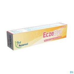 EczeDyn dringt door tot in de dermis en brengt er lipiden en hydraterende, regenererende en jeukwerende stoffen aan bij roodheid, jeuk, irritatie en uitdroging van de huid. EczeDyn is een innovatief product dankzij de AANVULLENDE WERKING van haar gepatenteerde BINDMIDDEL en haar FORMULE.