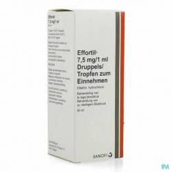 EFFORTIL is niet geïndiceerd voor gebruik bij patiënten met een verminderde posturale controle van de bloeddruk met hypertensieve reacties in staande houding, en bij patiënten met tachycardie, aderverkalking en hyperthyreoïdie.
