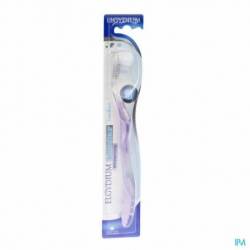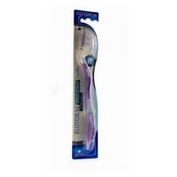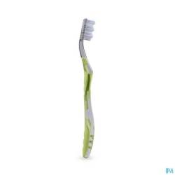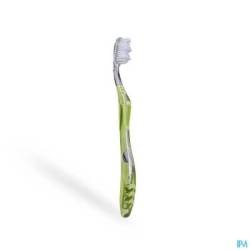 Een zachte tandenborstel met polijstende microballetjes voor stralende tanden.