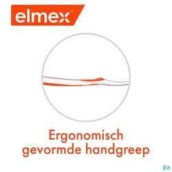 Daarnaast is de handgreep van de elmex® InterX tandenborstel ergonomisch gevormd, zodat hij tijdens het reinigen van de tanden prettig in de hand ligt.