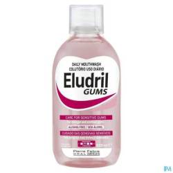 Eludril Gums mondspoeling kalmeert en zuivert gevoelig tandvlees, als aanvulling op het poetsen. Het draagt bij aan de bestrijding van tandplak, de belangrijkste oorzaak van gevoelig en geïrriteerd tandvlees: het tandvlees is 2 keer minder gevoelig na 3 weken gebruik¹. De gebruiksklare en alcoholvrije Eludril Gums mondspoeling biedt 12 uur lang bescherming tegen de bacteriën die verantwoordelijk zijn voor tandplak en vermindert ongemak van het tandvlees (tinteling, strakheid en rood tandvlees). Het combineert doeltreffendheid met plezierig gebruik, dankzij de aangename sensatie van munt en frisheid. Geschikt voor volwassenen en kinderen vanaf 12 jaar. De PET-fles is recycleerbaar en gemaakt van 100% gerecycled plastic.