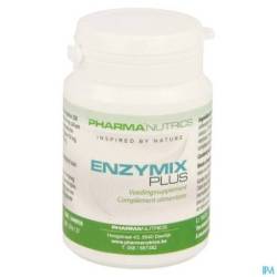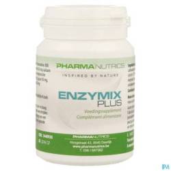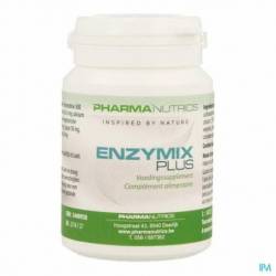 Enzymix Plus van Pharmanutrics is een hoog gedoseerd enzymen complex en bevat de volgende verteringsenzymen: 300 mg pancreatine, 154,7 mg calciumcarbonaat, 100 mg bromelaïne, 100 mg papaïne, 50 mg lipase , 50 mg digezyme enzymencomplex en 50 mg trypsine.