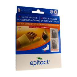 De corrigerende dubbele orthese voor hallux valgus beperkt de ontwikkeling van hallux valgus en verlicht de pijn die gepaard gaat met deze misvorming, terwijl het gebied onder de voorvoet, dat vaak tekenen van verhoorning of oververhitting vertoont, wordt beschermd.
