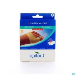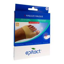Epitact® heeft een hallux valgus bescherming ontwikkeld die bestaat uit een gelkussentje van Epithelium 26® waardoor de druk en de wrijvingen ter hoogte van de "knobbel" beperkt worden. Op deze manier wordt de pijn verlicht en de vorming van eelt vermeden.