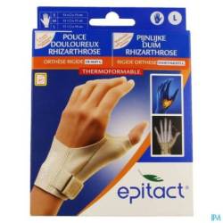 Werking:De EPITACT® orthese houdt de duim in rustpositie door de ruimte tussen de wijsvinger en de duim te openen. Doordat de beentjes in de goede positie worden gebracht, komt het carpo metacarpaal gewricht minder onder druk te staan, waardoor de pijn wordt verlicht.