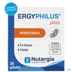 ERGYPHILUS® Plus bevat vitamine C die deelneemt aan het behoud van de goede werking van het immuunsysteem en vitamine B3 voor het in stand houden van een gezond darmslijmvlies. Het formaat van 30 capsules in een dosis van 8 miljard bacteriën per capsule is perfect geschikt voor een gerichte inname tijdens periodes waarin u een grotere gevoeligheid van de maag en darmen en qua afweer ervaart, en in geval van reizen naar het buitenland.