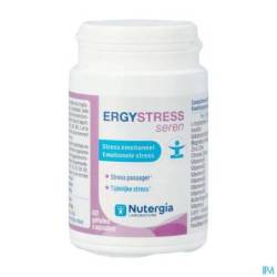 ERGYSTRESS® Seren bevat rozewortel, die het lichaam helpt aanpassen aan tijdelijke emotionele stress. Ze kan helpen om de vermoeidheid te verminderen die wordt veroorzaakt door stress of buitensporige mentale belasting, en om de gemoedstoestand te verbeteren. De formule bevat ook vitaminen B2, B3, B6, B9 en C, en magnesium, die bijdragen tot normale psychologische functies, evenals L-tryptofaan.