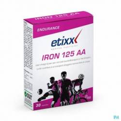 Etixx Iron 125 AA maakt gebruik van een chelaatvorm (gebonden aan aminozuren) en is daardoor beter opneembaar. Dit supplement bevat bovendien vitamine C en B-vitaminen. Vit. B2 en B6 dragen bij aan extra energie bij vermoeidheid en vitamine B12 activeert de natuurlijke energie in het lichaam. Vitamine B3 en B6 dragen bij tot een betere synthese van hemoglobine. Vitamine B12 is noodzakelijk voor de volgroeiing van de rode bloedcellen. Mangaan stimuleert de synthese van EPO (Erytropoëtine en stimuleert de aanmaak van rode bloedcellen in het beenmerg).