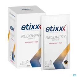 De Etixx Recovery Shake is een rijke mix van koolhydraten (glucose en fructose), weiproteïnen en vitaminen die zorgen voor een snelle heraanvulling van de energiereserves en een optimaal behoud van gezonde spieren. Hierdoor is deze shake geschikt na een intensieve of langdurige training of wedstrijd. Zowel explosieve sporters (gewichtheffers, werpers, sprinters, springers …), sporters die middellange inspanningen leveren (lopers, zwemmers, kajakkers, roeiers …), duursporters (marathonlopers, triatleten, wielrenners …)als team- en racketsporters (voetballers, basketballers, tennissers …) kunnen baat hebben bij het gebruik van deze hersteldrank.