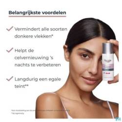 Vermindert donkere vlekken effectief en helpt terugkeer te voorkomen. Voor een egale en stralende teint.