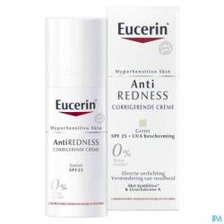 Eucerin AntiREDNESS Corrigerende Crème SPF25 Getint is speciaal ontwikkeld voor de hypergevoelige huid en de courerose- of rosacea gevoelige huid. Kalmeert irritaties direct en camoufleert roodheid. De innovatieve formule combineert 2 actieve bestanddelen - SymSitive* en LicochalconeA.