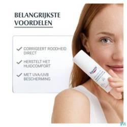 Eucerin AntiREDNESS Corrigerende Crème SPF25 Getint bevat groene pigmenten die onmiddellijk de roodheid camoufleert en de teint egaliseert als een concealer.