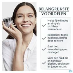 's Ochtends aanbrengen op het gezicht, de nek en het decolleté door licht in de huid te masseren, waarbij de tere huid rond de ogen wordt vermeden.