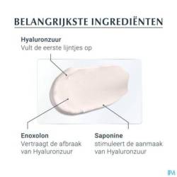 De formule combineert hoog en laag moleculair hyaluronzuur dat inwerkt op de oorsprong van rimpels. SPF 30 en UVA-bescherming voorkomen op doeltreffende wijze voortijdige veroudering en de verdieping van bestaande rimpels. De huid is zichtbaar gladder. Creëert een uitstekende basis voor make-up.