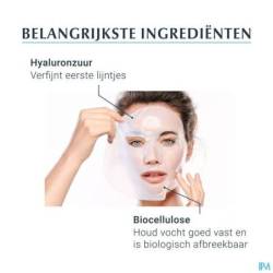 Het masker zelf is gemaakt van biocellulose, een biologisch afbreekbaar materiaal van natuurlijke oorsprong, dat eenvoudig aan te brengen is, perfect op de gezichtscontouren past zonder te glijden, en zo comfortabel is dat het als een tweede huid aanvoelt.