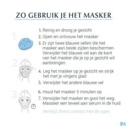 Het masker is geschikt voor alle huidtypes, ook voor de gevoelige huid. Resultaat: De huid ziet er minder vermoeid en minder gestrest uit.