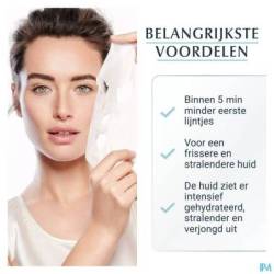 Dit hydraterende anti-aging gezichtsmasker met klinisch en dermatologisch bewezen werking verkoelt de huid, vermindert fijne lijntjes en laat de huid er frisser, stralender en jonger uitzien.