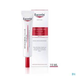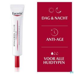 Eucerin HYALURON-FILLER + VOLUME-LIFT Oogcontourcrème voor alle huidtypen richt zich specifiek op de rimpels en verslapping door een afnemend huidvolume van de tere huid rond de ogen. De klinisch geteste formule bevat drie actieve ingrediënten die doordringen in specifieke lagen van de huid en helpt de huid rond de ogen te herdefiniëren en te verstrakken. Het natuurlijke magnolol vergroot de grootte en het aantal volume gevende cellen*, terwijl oligopeptiden