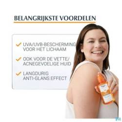 Een transparante zonnebescherming voor het lichaam met hoge UV-bescherming en celbescherming Deze transparante, niet-vette zonnebescherming is ideaal voor de normale en vette huid.
