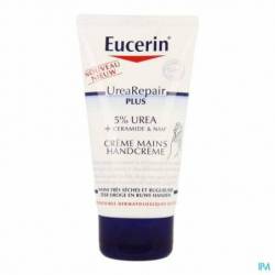 De Eucerin UreaRepair 5% Urea Handcrème geeft de droge en ruwe huid van de handen de dagelijkse verzorging die ze nodig hebben. De crème bevat een specifieke combinatie van ingrediënten: 5% Urea, Ceramiden en andere Natuurlijke Hydratatiefactoren (NMF's, Natural Moisturizing Factors), die vocht binden en helpen de natuurlijke beschermende barrière van de huid te versterken om haar te beschermen tegen meer vochtverlies.