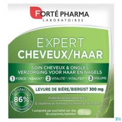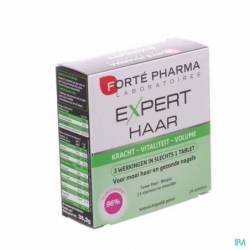 Stress, zwangerschap of seizoensveranderingen hebben een negatieve invloed op de schoonheid en de gezondheid van het haar. Ze worden beschadigd en vallen meer uit dan gewoonlijk.De doeltreffende werking van Expert Haar berust op 3 synergetische werkingen: - Werking tegen haaruitval: de haaruitval wordt afgeremd en het opnieuw groeien van het haar wordt gestimuleerd dankzij de toevoer van aminozuren (cysteïne et methionine) en antioxidanten. - Versterkende werking: het haar wordt versterkt dankzij het Forté-Nutris complex, een combinatie van galam, druivenextract en vitamine B3. - Straling van het haar: biergist en kliskruid laten het haar stralen. Expert Haar bevordert ook de schoonheid en de gezondheid van de nagels.