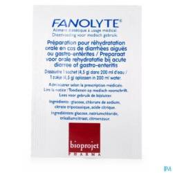 Dieetvoeding bij acute diarree of gastro-enteritis bij zuigelingen, kinderen en volwassenen. Dieetvoeding voor medisch gebruik. Fanolyte is een rehydratatie oplossing dat helpt om de vochtbalans te herstellen als er sprake is van vochtverlies, bijvoorbeeld bij acute diarree of gastro-enteritis. Vooral zuigelingen en jonge kinderen kunnen snel uitdrogen wanneer het vochtverlies via de stoelgang groter is dan de hoeveelheid die ze drinken, wat nog verergerd