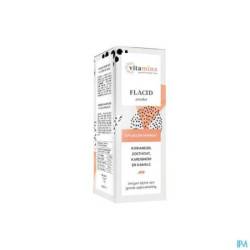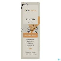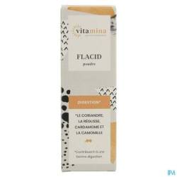 Flacid poeder is voor het grootste gedeelte samengesteld uit Johannesbroodboompitmeelgompoeder dat in de voedingssector veel gebruikt wordt als verdikkingsmiddel. Tezamen met de vloeibare extracten van koriander, zoethout, kardemom en wilde kamille helpt ze in geval van oprispingen en draagt ze bij tot een goede spijsvertering.