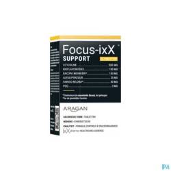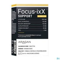 Focus-ixX®SUPPORT is een zeer vernieuwende en doeltreffende formule ter ondersteuning van concentratie en reactiesnelheid. Ideale cognitieve steun voor volwassenen onder meer tijdens en na winterongemakken en ook voor oudere personen. IxX pharma gebruikt voor het eerst het PQQ of pyrroloquinoline quinone, een aromatische heterocyclische orthoquinone.