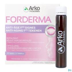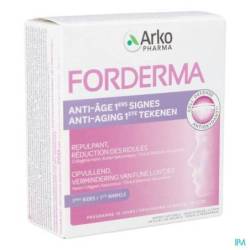FORDERMA ANTI-AGING 1STE TEKENEN combineert marien collageen met hyaluronzuur om de veerkracht van de huid te behouden. Zink en selenium zijn CELL'DEFENSE werkzame bestanddelen om cellen helpen te beschermen tegen oxidatieve stress.