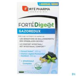 FortéDigest GAZOREDUX helpt het opgeblazen gevoel te verlichten en draagt bij tot een goede spijsvertering dankzij venkel. Het bevordert ook het intestinale welzijn dankzij in het bijzonder de gemberwortel die inwerkt op een normale werking van de darmen.