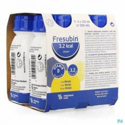 Fresubin 3,2 KCAL Drink is een volledige drinkvoeding voor medisch gebruik, boordevol energie (400 kcal/flesje) en hoogwaardige eiwitten (20 g/flesje) in een klein flesje. Deze voeding voorziet het lichaam van de nodige energie, wanneer gewone voeding niet volstaat of extra voedingsstoffen nodig zijn. De rijke formule bevat goed opneembare eiwitten en alle essentiële vitaminen en mineralen. Het is een kant-en-klare voeding die geschikt is als enige voedingsbron.