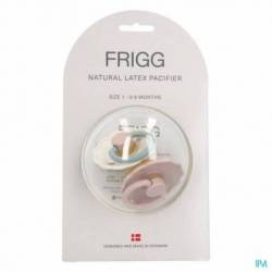 De Frigg fopspeen bestaat uit een latex speen met een gebogen schild.