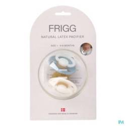 De Frigg fopspeen bestaat uit een latex speen met een gebogen schild.