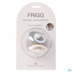 De Frigg fopspeen bestaat uit een latex speen met een gebogen schild.