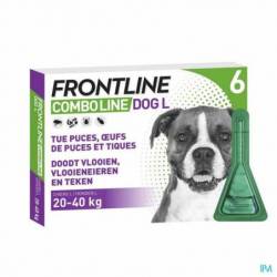 Frontline Combo®Line is een eenvoudig aan te brengen vloeistof die je hond beschermt tegen vlooien en teken. Ook je huis is dankzij dit product resistent tegen vlooien.Frontline Combo®Line beschermt je hond 4 weken tegen teken en 4 weken tegen vlooien. Voor honden van 20kg tot 40kg.