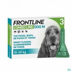 Frontline Combo®Line is een eenvoudig aan te brengen vloeistof die je hond beschermt tegen vlooien en teken. Ook je huis is dankzij dit product resistent tegen vlooien.Frontline Combo®Line beschermt je hond 4 weken tegen teken en 4 weken tegen vlooien. Voor honden van 10kg tot 20kg.