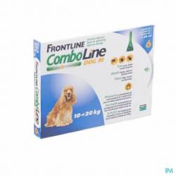 Frontline Combo®Line is een eenvoudig aan te brengen vloeistof die je hond beschermt tegen vlooien en teken. Ook je huis is dankzij dit product resistent tegen vlooien.Frontline Combo®Line beschermt je hond 4 weken tegen teken en 4 weken tegen vlooien. Voor honden van 10kg tot 20kg.