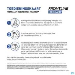 Frontline Homegard is een omgevingsspray voor in huis. Het doodt vlooien en vlooienlarven en remt de ontwikkeling van de eitjes van de vlooien gedurende 6 maanden. Het bevat permethrin en S-methopreen. Het kan gebruikt worden op niet-afwasbare meubelen en huishoudelijk textiel zoals plinten, vloeren, vloerbedekking, vloerkleden, banken, fauteuils en in de auto.