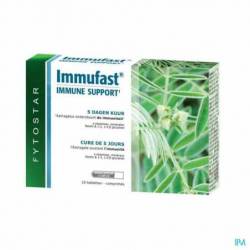 Fytostar Immufast IMMUNE SUPPORT is een 5 dagen kuur op basis van natuurlijke bestanddelen, met onder andere Astragalus*; dit ondersteunt de immuniteit op het moment wanneer het gewenst is. De formule bevat bovendien vitamine D, vitamine B12, foliumzuur, selenium en zink die bijdragen aan het behoud van een goede weerstand. Ideaal op reis, bij seizoenswissels en temperatuurschommelingen. Vitamine D draagt ook bij tot het behoud van een goede werking van de spieren en vitamine B12 draagt bij tot de vermindering van vermoeidheid en ondersteunt de natuurlijke energie in het lichaam. Dit product bevat daarnaast natuurlijke bestanddelen met een dagdosering van 500 mg 1-3, 1-6ß glucanen en 250 mg van de paddenstoel Reishi. De kuur van 5 dagen mag herhaald worden en bevat geen allergenen. * Evaluatie gezondheidsclaim is lopende.