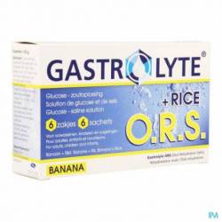 Gastrolyte O.R.S. Banana + rice is een glucose-zoutoplossing met rijst. Het is een gemakkelijke instantbereiding met toegevoegde rijst een aangename bananensmaak. Het is een O.R.S. (= Oral Rehydration Salts), ter ondersteuning van een goede vochtbalans.