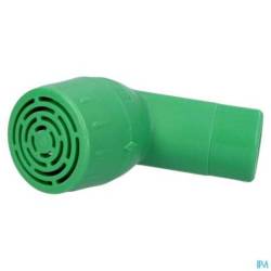 1. Om een optimale therapie te garanderen, raden we u aan om aan een tafel te gaan zitten. Ontspan u en laat uw ellebogen op het tafelblad rusten. Neem GeloMuc in uw hand en zorg ervoor dat de gaatjes in het kopstuk niet bedekt zijn.