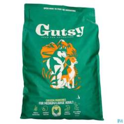 Gutsy Chicken Munchies voor grote volwassen honden zijn graanvrij en ontworpen om de immuniteit te verhogen en de spijsvertering te verbeteren. Ze bestaan uit 85% dierlijke eiwitten, met insecten, zoete aardappel, wortel, appel, kip en veenbessen.