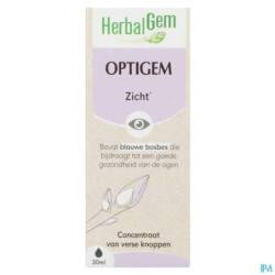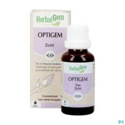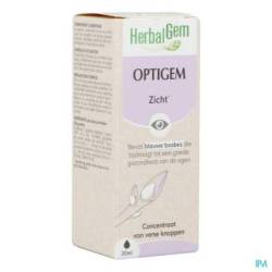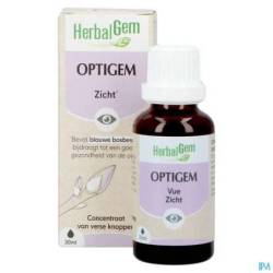 OPTIGEM is een selectie van jonge scheuten en voedingsstoffen om de oogfunctie te verbeteren en het vermoeide oog te verlichten. De blauwe bosbes werd vroeger gebruikt door gevechtspiloten om 's nachts hun gezichtsvermogen te verbeteren en jeneverbes is gekend om haar zuiverende werking op de leverfunctie die rechtstreeks in verbinding staat met de oogfunctie.