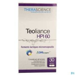 TEOLIANCE HPI 60 bevat 1 capsule met 60 miljard CFU* van 7 individueel micro-ingekapselde stammen van microbiota met wetenschappelijk bewezen werkzaamheid voor hun voordelen voor de spijsvertering: