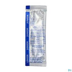 De 7 grams-verpakking is speciaal voor junioren van 2-16 jaar. Aan de oplossing zijn geen kleurstoffen en conserveermiddelen toegevoegd en de smaakstoffen (tropi fruitti) zijn natuurlijk (Internationaal Vegan keurmerk). De sachets zijn 3 jaar houdbaar en kunnen meegenomen worden in jas of tas; ze kunnen tegen een stootje. De sachets mogen vochtig worden en kunnen bij temperaturen tussen 5-60°C bewaard worden.